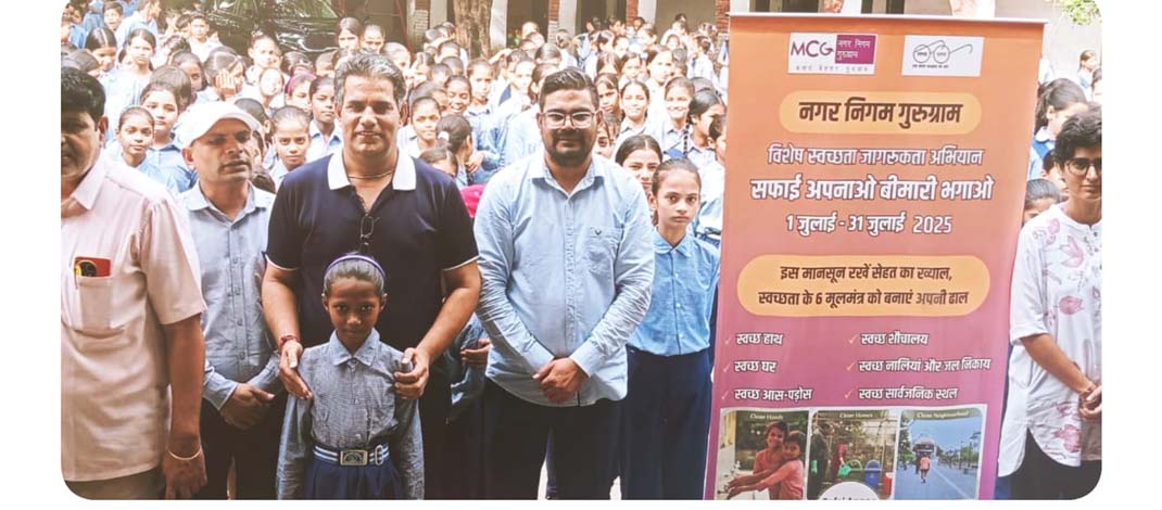 गुरुग्राम : नगर निगम वार्ड 35 स्थित भीमगढ़ खेड़ी सरकारी स्कूल द्वारा आयोजित स्वच्छता जागरूकता अभियान के दौरान बच्चों को स्वच्छता के प्रति जागरूक किया गया। सभी बच्चों ने प्रतिज्ञा ली कि वो अपने घर और घर के आस-पास सफाई का विशेष ध्यान रखेंगे और अपने परिवार के लोगों को भी स्वच्छता के प्रति जागरूक करेंगे। कार्यक्रम में मुख्य अतिथि के रूप में शिरकत किए नगर निगम वार्ड 35 के पार्षद एवं पूर्व डिप्टी मेयर परमिंदर कटारिया ने कार्यक्रम में उपस्थित सभी नागरिकों और स्कूली बच्चों को स्वच्छता की शपथ दिलाई।