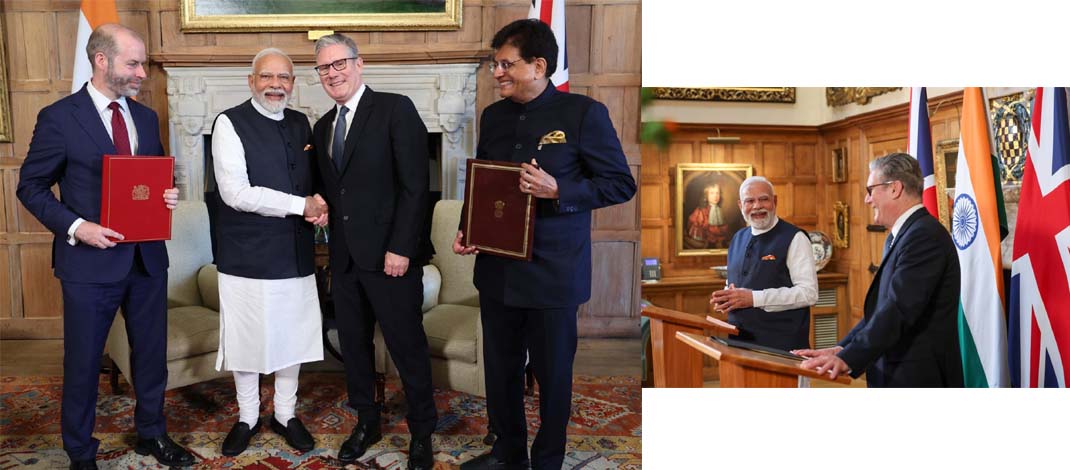 New Delhi : During his official visit to the United Kingdom from 23-24 July 2025, Prime Minister Narendra Modi met today with the Prime Minister of the United Kingdom, Sir Keir Starmer. On arrival at the UK Prime Minister’s country residence at Chequers in Buckinghamshire, he was warmly received by Prime Minister Starmer. The two leaders held a one-on-one meeting as well as delegation level talks.