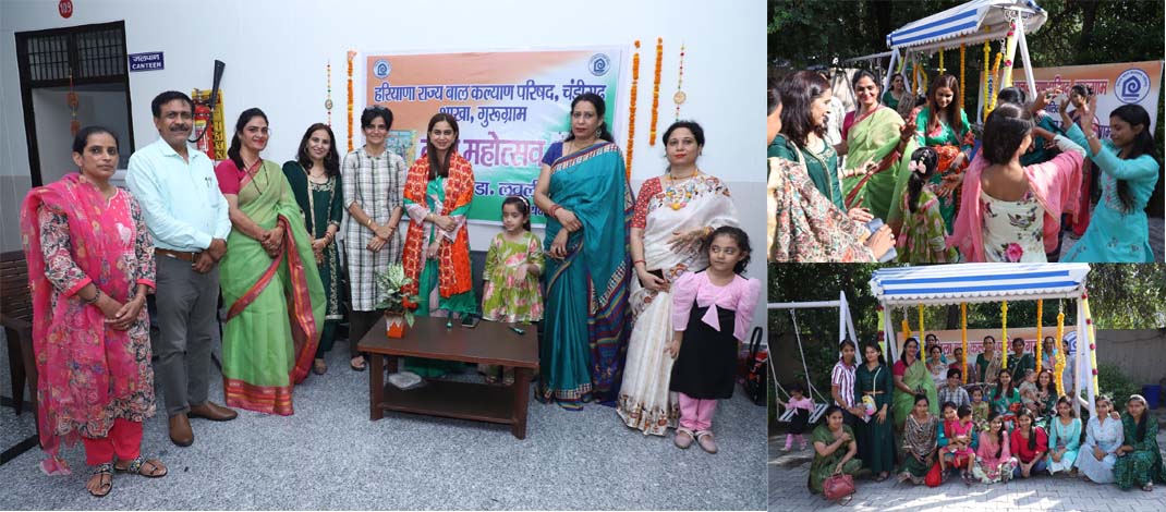 Gurugram : Hariyali Teej Festival was celebrated with great joy and traditional enthusiasm on Saturday at Jagannath Ashram Balgrih run by District Child Welfare Council, Gurugram. Dr. Loveleen Kaur, IRS, Vice President of District Child Welfare Council, attended the program as the chief guest and encouraged the girls living in the Balgrih.