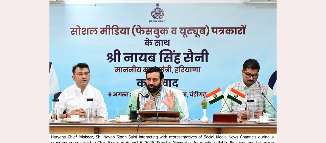 Describing social media as a powerful medium for social reform, the Chief Minister highlighted its potential in advancing public interest campaigns launched by the state government. He specifically mentioned initiatives such as Nasha Mukt Haryana, Environmental Protection, and Swachhata Abhiyan, urging representatives of social media news channels to actively contribute in ensuring these campaigns reach every household. He emphasized that this collective effort would accelerate positive change within society.