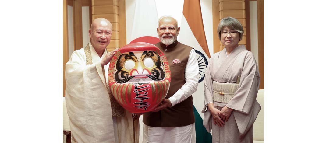 New Delhi : Prime Minister Narendra Modi was today presented a Daruma doll by Rev Seishi Hirose, Chief Priest of the Shorinzan Daruma-Ji temple, Takasaki-Gunma. This special gesture reaffirms the close civilizational and spiritual ties between India and Japan.