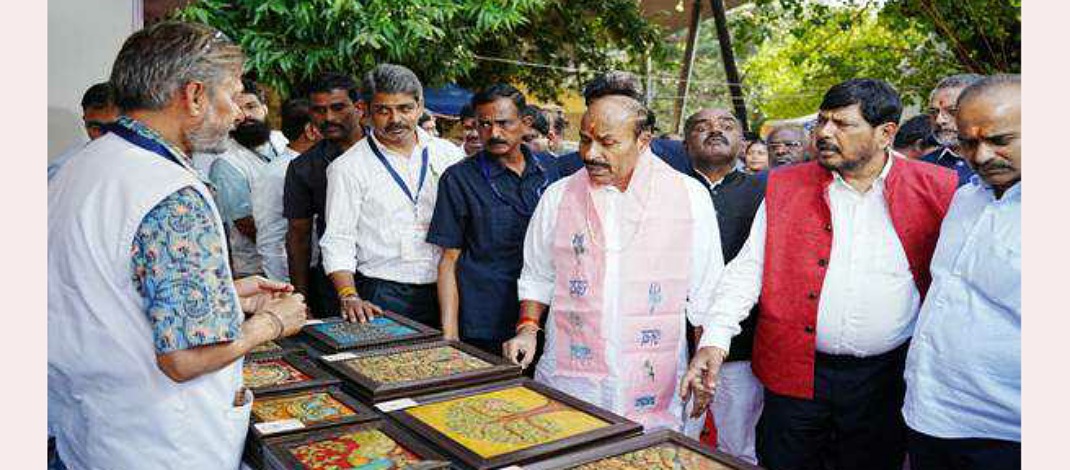 Dr. Virendra Kumar, Union Minister of Social Justice and Empowerment inaugurated the mela today, in the presence of Honble Shri Ramdas Athawale, Minister of State, SJE,  P.C.Mohan, Hon’ble Member of Parliament, Bengaluru Central and senior officials of SJE and Social Welfare Dept. Government of Karnataka, artisans, and cultural representatives.