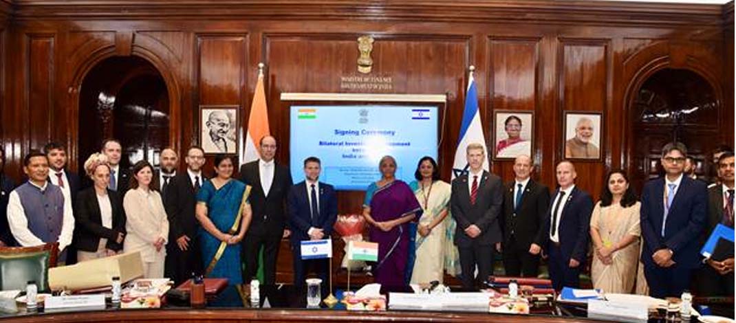 New Delhi : The Government of the Republic of India and the Government of the State of Israel signed a Bilateral Investment Agreement (Agreement), in New Delhi, today. The Agreement was signed by Union Minister for Finance and Corporate Affairs Smt. Nirmala Sitharaman, and H.E. Mr. Bezalel Smotrich, Finance Minister of the State of Israel.
