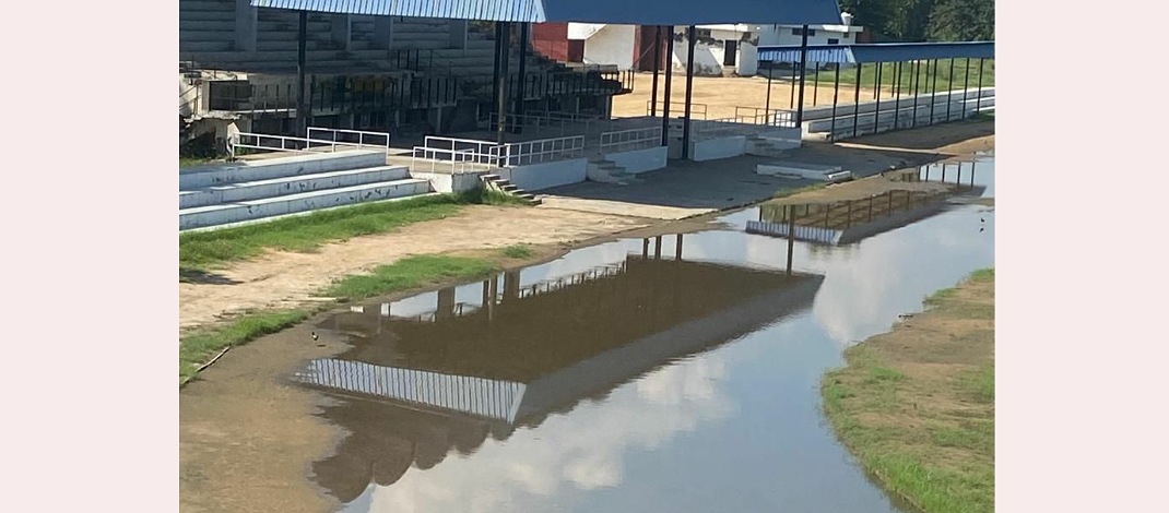 -भीम स्टेडियम में भर जाता है बरसाती पानी, खिलाड़ी नहीं कर पाते अभ्यास