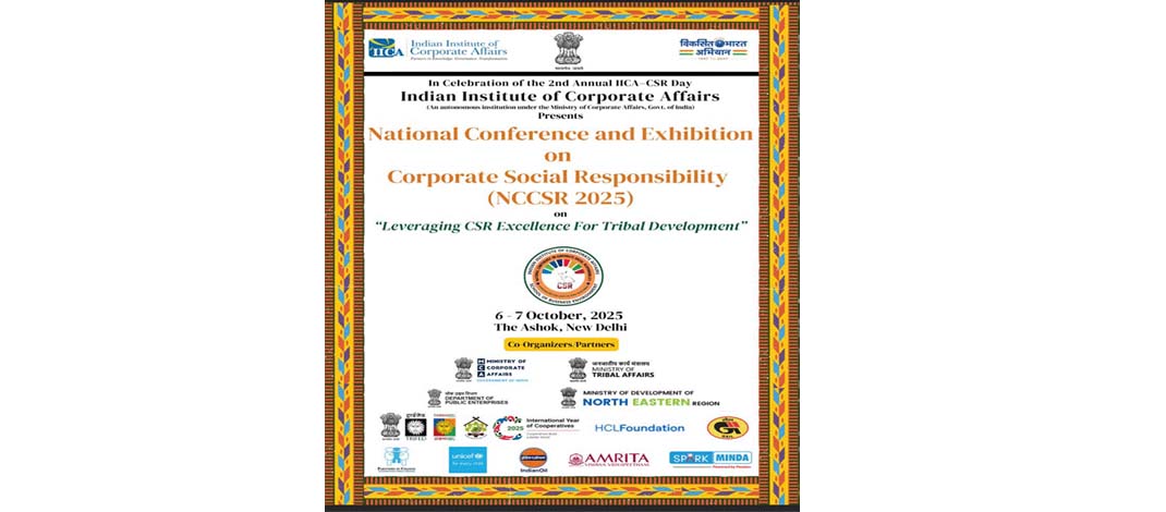 New Delhi : The Indian Institute of Corporate Affairs (IICA) will host the 2nd National Conference and Exhibition on Corporate Social Responsibility (NCCSR 2025) on 6–7 October 2025 in New Delhi. The theme of the conference is “Leveraging CSR Excellence for Tribal Development.” The event is organised by IICA through its School of Business Environment, in collaboration with the Ministry of Corporate Affairs, Ministry of Tribal Affairs, Ministry of DoNER, and Department of Public Enterprises.