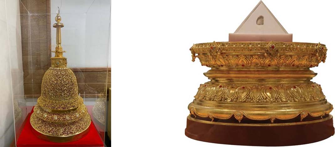 It may be mentioned that India was able to successfully bring back the jewels associated with the Piprahwa relics from Hong Kong where they were being auctioned. In a move led by the Ministry of Culture, the relics were returned to India with fanfare and enthusiasm among Buddhists in India and across the world. Buddha belonged to the Shakya clan, whose capital was located at Kapilavastu. During an excavation in 1898, William Claxton Peppe discovered five small vases containing bone fragments, ashes, and jewels in a long-forgotten stupa in Piprahwa, near Birdpur in the Basti district of Uttar Pradesh.