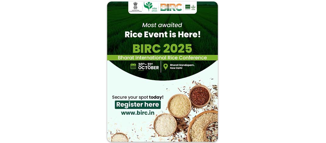 New Delhi : The Department of Commerce, Ministry of Commerce & Industry, Government of India, has announced that the Bharat International Rice Conference (BIRC) 2025 will be held at Bharat Mandapam, Pragati Maidan, New Delhi, on 30th – 31st October .