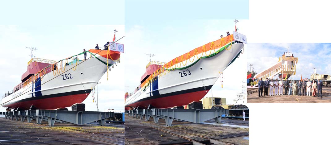 The vessels were launched by Smt. Manju Sharma, in the presence of Financial Advisor (Defence Services) Dr. Mayank Sharma, who graced the ceremony as the Chief Guest. The event was also attended by Commander, ICG Region (West) Inspector General Bhisham Sharma along with senior officers from the ICG and Goa Shipyard Limited.