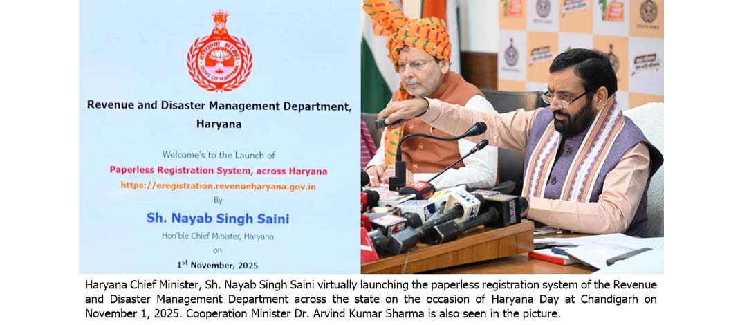 Chief Minister Sh. Nayab Singh Saini launched the system digitally during a press conference held at Haryana Niwas today. He informed that the initiative was first started in the Ladwa tehsil of Kurukshetra district on September 29, and has now been expanded to the entire state. From September 29 to October 31, 2025, a total of 917 paperless registries have been successfully completed, demonstrating the success of this system.