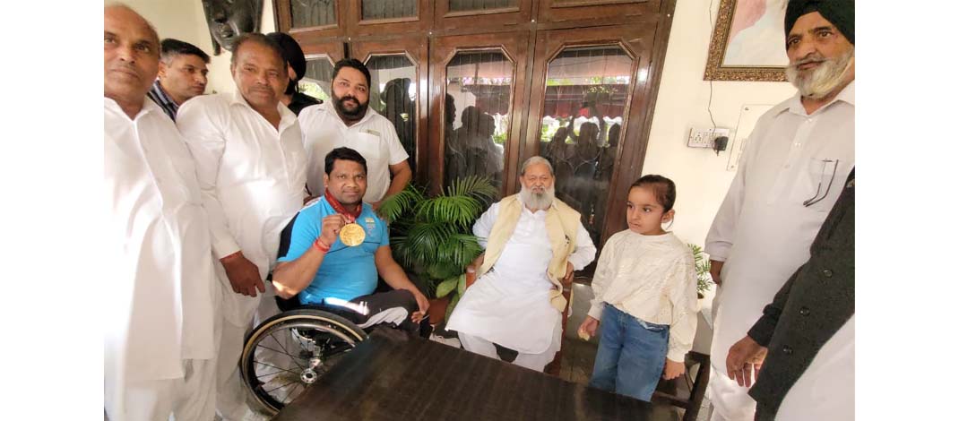 Chandigarh : Haryana’s Energy, Transport, and Labour Minister, Sh. Anil Vij, today congratulated Deepak Saini, a shooter from Shahpur, for winning the gold medal at the Para Shooting World Cup held recently. The minister also presented him with a cash incentive of Rs. 11,000 from his discretionary fund as a token of encouragement.