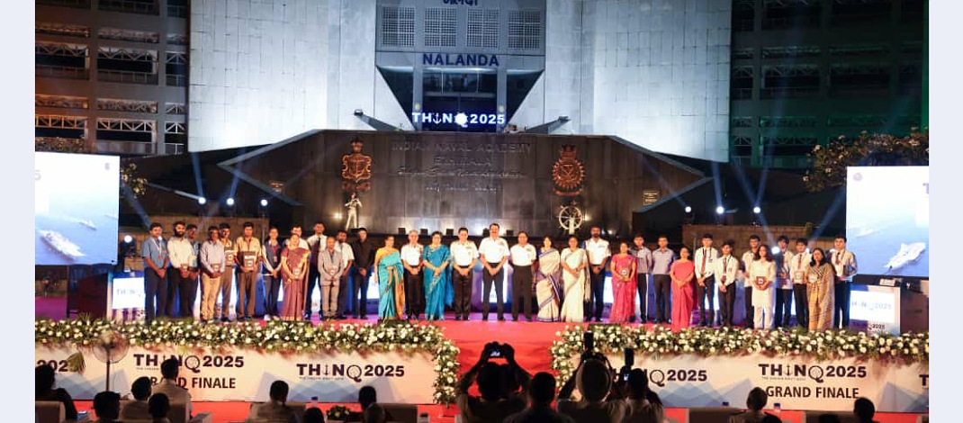 New Delhi : The Grand Finale of THINQ 25 – The Indian Navy Quiz concluded with great enthusiasm and vibrancy at the Indian Naval Academy (INA), Ezhimala, on 05 Nov 2025Adm Dinesh K Tripathi, Chief of the Naval Staff, graced the occasion as the Chief Guest. The event marked the culmination of a nationwide intellectual voyage celebrating knowledge, innovation, and India’s rich maritime heritage.