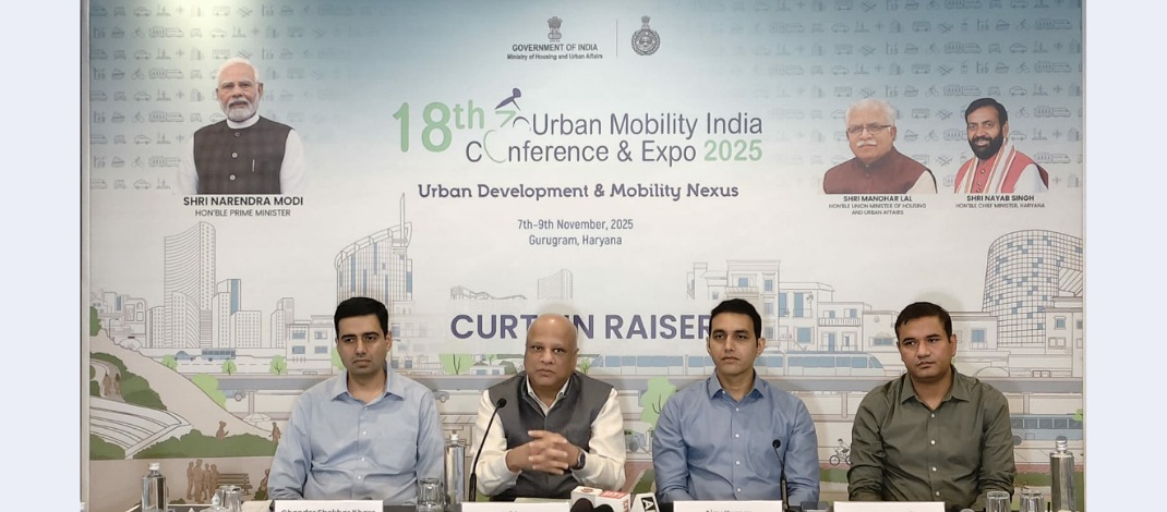 Gurugram : The 18th Urban Mobility India (UMI) Conference and Expo – 2025 is being organized by the Ministry of Housing and Urban Affairs, Government of India, through the Institute of Urban Transport (India), from Friday, November 7th to November 9th in Gurugram, adjacent to the national capital. The event is supported by the Government of Haryana and Gurugram Metro Rail Limited (GMRL). Union Housing and Urban Affairs Minister Shri Manohar Lal will inaugurate the three-day conference. This information was given by Jaideep, OSD (Urban Transport), Ministry of Urban Housing, Government of India, at the curtain raiser ceremony. GMRL MD Dr. Chandra Shekhar Khare, Deputy Commissioner Ajay Kumar, and Director (MITS) Yogesh Antil from the Ministry of Urban Housing, Government of India were present on the occasion.
