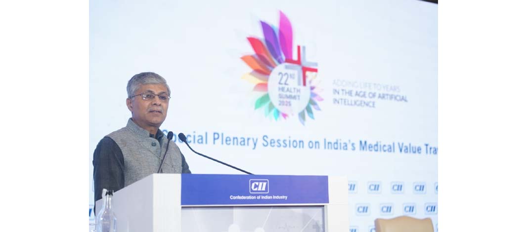 New Delhi : Vaidya Rajesh Kotecha, Secretary, Ministry of AYUSH, addressed today the 22nd CII Annual Health Summit 2025 in New Delhi, underscoring Ayurveda’s pivotal role in shaping the future of holistic healthcare in India. He urged hospitals and healthcare providers to fully harness the vast potential of Ayurveda by actively integrating Ayurvedic therapies, wellness treatments, detoxification, and yoga with modern medical services.