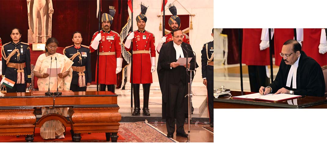 New Delhi : Justice Surya Kant has become the new Chief Justice of India. President Draupadi Murmu administered the oath of office to him as CJI on Monday (November 24, 2025). He was sworn in as CJI in the presence of Vice President C.P. Radhakrishnan, Prime Minister Narendra Modi, Defense Minister Rajnath Singh, Home Minister Amit Shah, Lok Sabha Speaker Om Birla, BJP President J.P. Nadda, former President Ram Nath Kovind, and former Vice President Jagdeep Dhankhar.