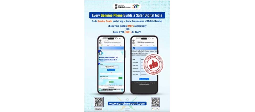 To ensure safety, citizens can verify IMEI details using the Sanchar Saathi portal (https://ceir.sancharsaathi.gov.in/Device/SancharSaathiKym.jsp) or the Sanchar Saathi Mobile App, which provides information on brand, model, and manufacturer. The initiative helps citizens secure their mobile connections and prevents misuse of telecom resources.