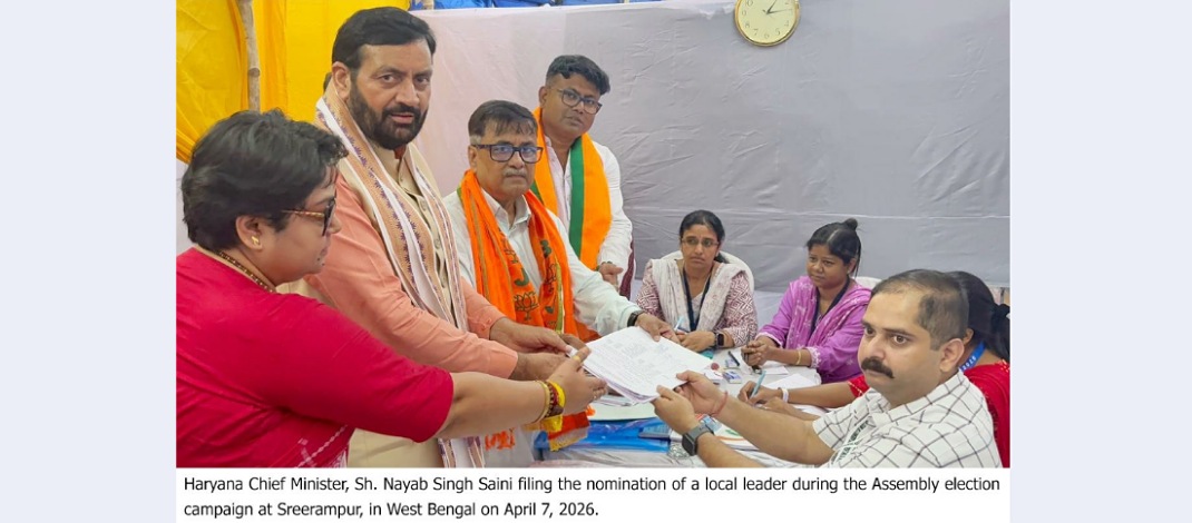 Chief Minister Sh. Nayab Singh Saini was interacting with journalists on Tuesday during his visit to West Bengal after the filing of nomination papers of the candidate from Sreerampur Assembly constituency. He also conducted a roadshow in support of the BJP candidate in Sreerampur and appealed to the people to vote in favour of the BJP.