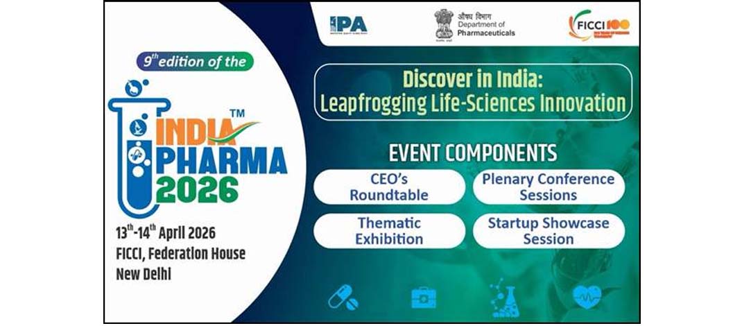 New Delhi : The Department of Pharmaceuticals, Ministry of Chemicals & Fertilizers, Government of India, is organising the 9th edition of India Pharma 2026. The event is being held in association with the Federation of Indian Chambers of Commerce and Industry (FICCI) and the Indian Pharmaceutical Alliance (IPA) on April 13-14, 2026, at Federation House, FICCI, New Delhi.